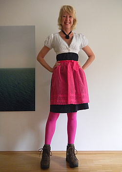 Dafür möchte ich mich von Herzen bei Katharina Hovman bedanken, die das Kleid entworfen hat. Ihr ist da was ganz und gar Großartiges gelungen: ein Kleid, das nicht nur unzählige Waschmaschinengänge überlebt hat, sondern auch meine Launen, Experimente und vor allem auch Uninspiriertheiten an manchen Tagen, wo ich wirklich nur das Kleid anziehen und mir sonst keinen Kopp machen wollte. Fast das größte Vergnügen an dem Projekt war es, sich zu Beginn mit Katharina hinzusetzen und zu überlegen, wie das Kleid aussehen sollte. So was ist besser als jede Psychotherapie, man lernt viel über sich selbst dabei. Wie sieht man sich selbst? Was für ein Leben führt man? Und wie soll die passende Hülle dafür aussehen? Ich kann es nur empfehlen, sich mindestens einmal im Leben so ein ganz eigenes Kleid machen zu lassen.
