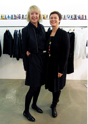 Diese Dame wollte ich jetzt doch noch mal schnell vor die Kamera zerren: Katharina Müller-Lenz alias Katharina Hovman, die das kleine Blaue entworfen hat (rechts quasi ein historisches Foto aus der Entstehungszeit – und das einzige, wo mal alle drei drauf zu sehen sind). Sie hat sich jetzt dazu durchgerungen, das Kleid auf Nachfrage für Interessierte nachzuschneidern. Ich glaube, ich muss hier nicht viel Werbung machen: Das Ding funktioniert toll, es hat ein Jahr Dauereinsatz fantastisch überstanden, ich kann es nur empfehlen. Es soll, nicht erschrecken, 379 Euro kosten und ist über Katharina Hovman zu bestellen. Wer in Hamburg und Umgebung wohnt und mal schnell reinschlüpfen will: Eines der drei kleinen Blauen bleibt bei Katharina zum Anprobieren im Laden, Eppendorfer Landstraße 63.